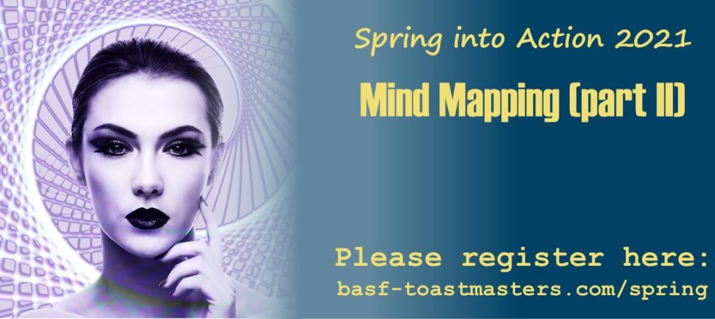 Have you been to our Toastmasters workshop in March about “Mind Map & Creating Action”? Or haven’t? No matter, join in on 31 May and create a mind map by yourself! At first Martin will give you a very short introduction / summary about the principle of a mind map. And then it’s time to design a quick mind map on your own to a given topic. Following in small groups you’ll merge the individual maps to the group’s mind map and share the result. Furthermore this workshop offers small activities to be creative and speak.