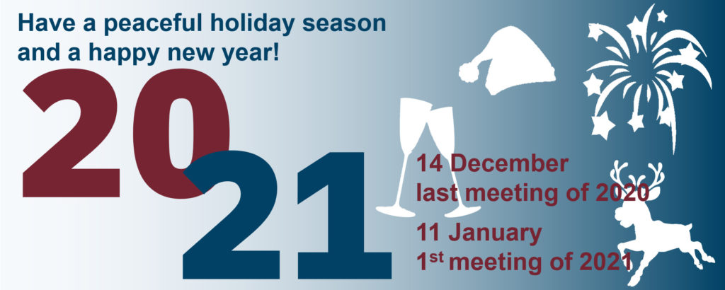 Please note that these online meetings will be conducted on Skype. Have a peaceful holiday season and a happy new year!